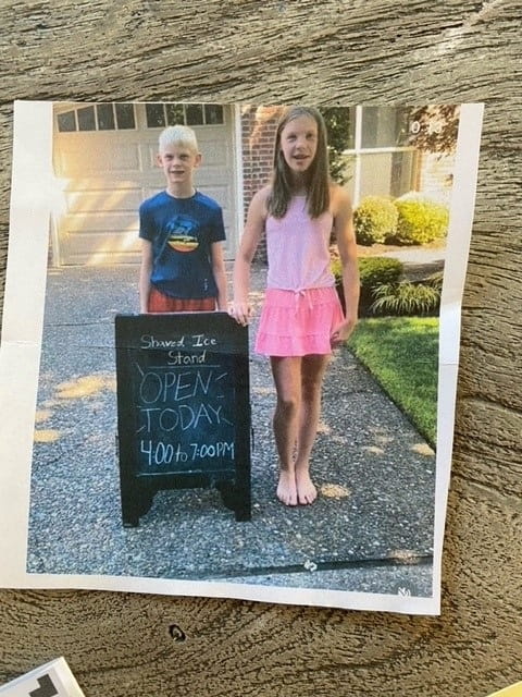 The chance to put those learnings to use came in 2019 when Marlo and Reid wanted to make some money. A traditional lemonade stand seemed boring, so they chose shaved ice. A popular trail that runs past their house gave the young entrepreneurs an instant customer base.