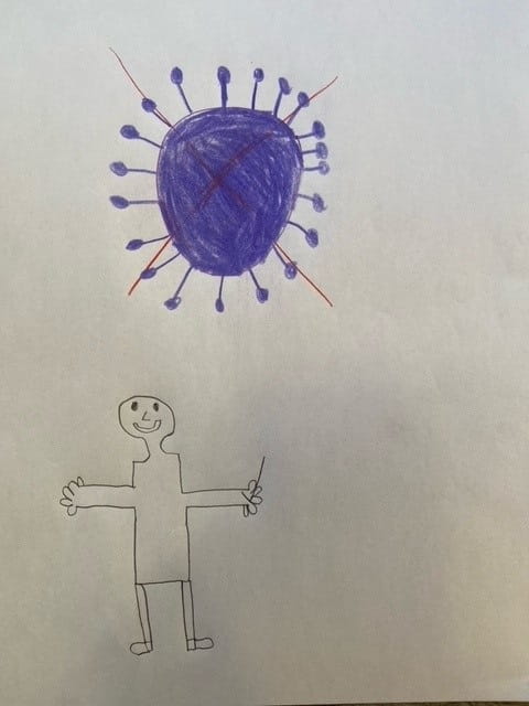 The author, 9-year-old Reid Varga, went on to write in big, wonky letters that he chose Legacy Meridian Park because he heard hospitals were struggling. He wanted the staff to have more beds and more medicine to help people with “dumb Covid.”