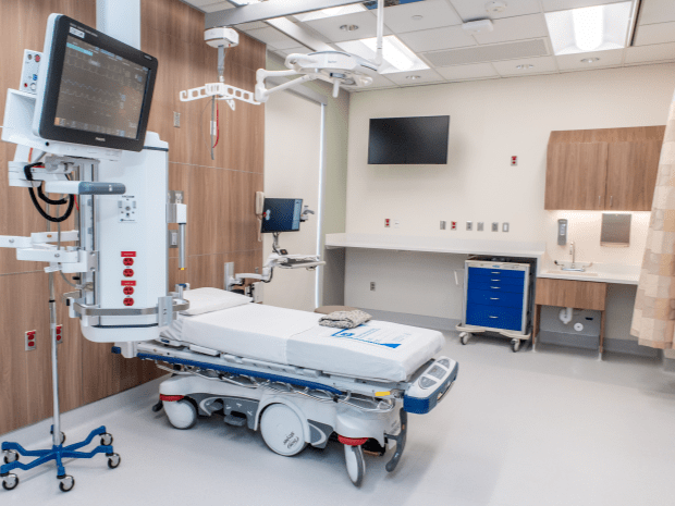 The new emergency department expanded from 12 to 20 spacious, modernized patient rooms to provide a full range of capabilities, including a trauma treatment bay to expanded rooms designed to care for trauma and cardiac patients