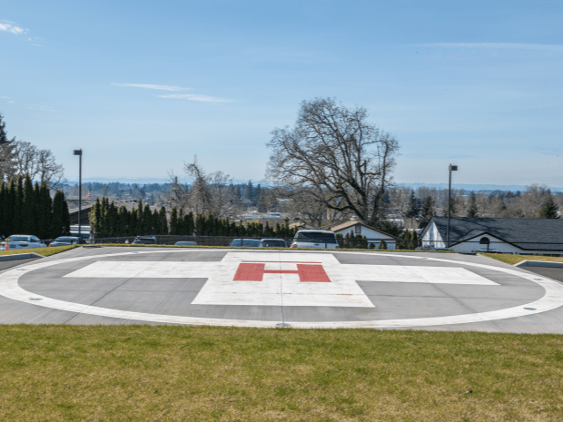 A new helicopter landing pad will allow air ambulances to safely land and transport critically ill patients and babies. Patients requiring access to higher-acuity hospitals, such as Legacy Emanuel Medical Center or Randall Children's Hospital at Legacy Emanuel in Portland, can be transported from a new helipad located directly across the street from Legacy Silverton hospital.