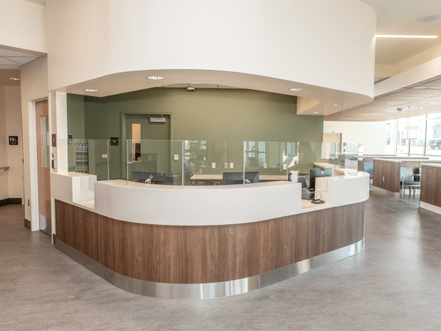 Along with the upgrades to the emergency department, the new hospital entrance includes a covered drop-off and pick-up zone to shield patients and their families from the weather as they enter the facility.